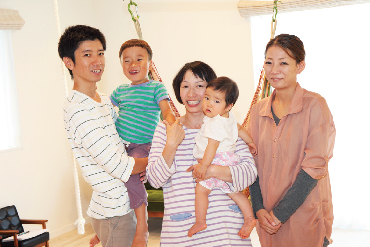 ソファの手すりの上に立ち、勢いよく足で蹴ってリビングのど真ん中をブラーンブラーン。登り綱にしがみついたご長男の得意満面の笑顔がなんとも言えません。テレビを置かないリビングでは、お子様はもっぱら遊びに夢中。ご夫妻はその様子を見ながらくつろぎます。「ご飯を食べて、お風呂に入って、みんな夜9時ぐらいに寝ちゃいます」と、伊藤家の日常は自然体です。